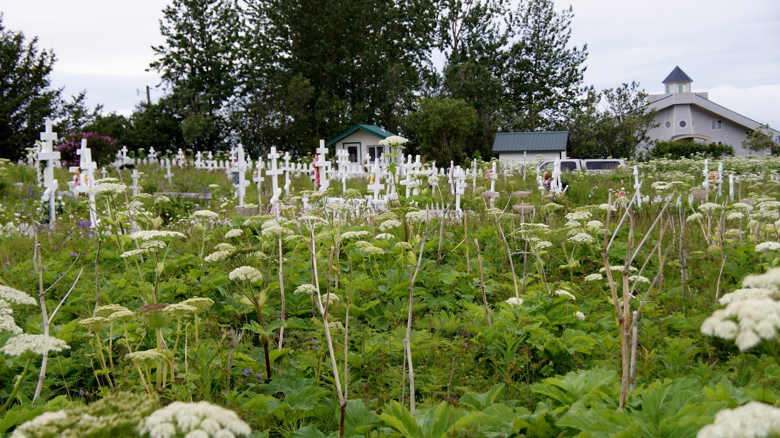RUSSIAN ORTHODOX GRAVE YARD. THEY PLANT THEM AND LET’EM GO